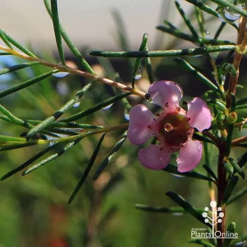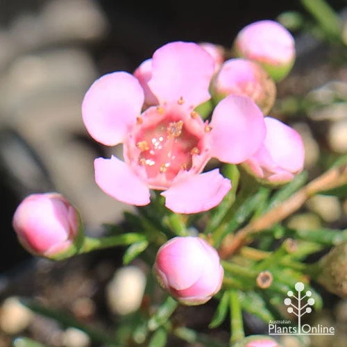 APPEARANCE : Late season native waxflower hybrid; pink blooms with deep red centres. Tall growing variety with slender needle-like foliage typical of waxflowers.